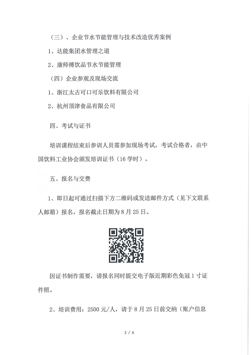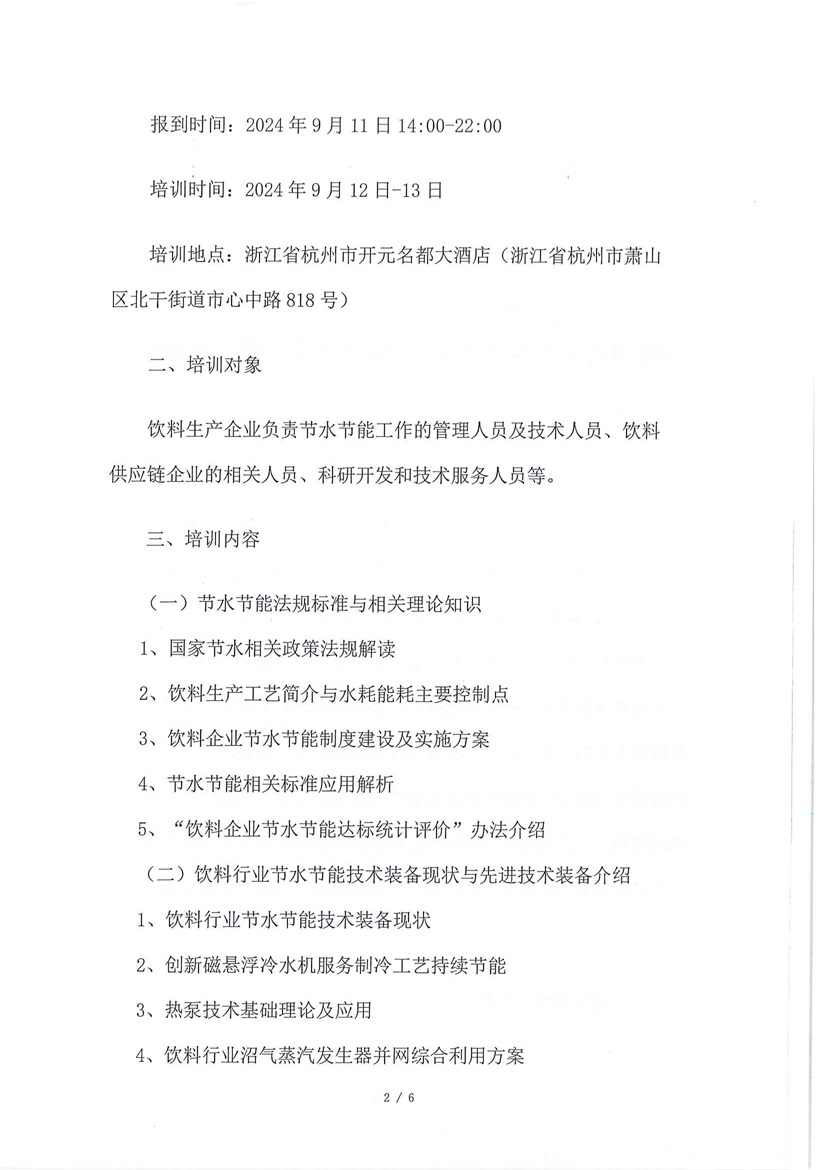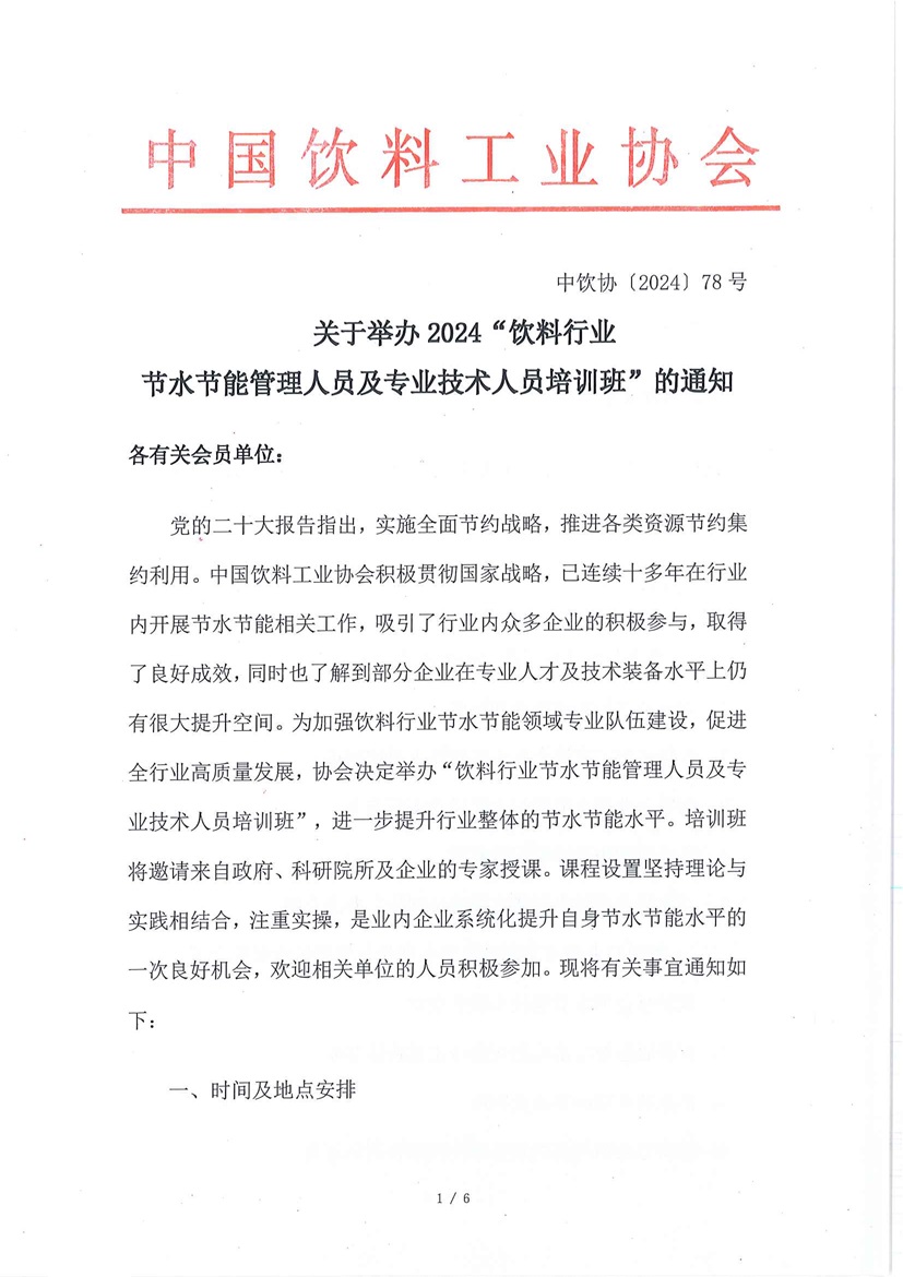 關(guān)于舉辦2024“飲料行業(yè)節(jié)水節(jié)能管理人員及專業(yè)技術(shù)人員培訓(xùn)班”的通知